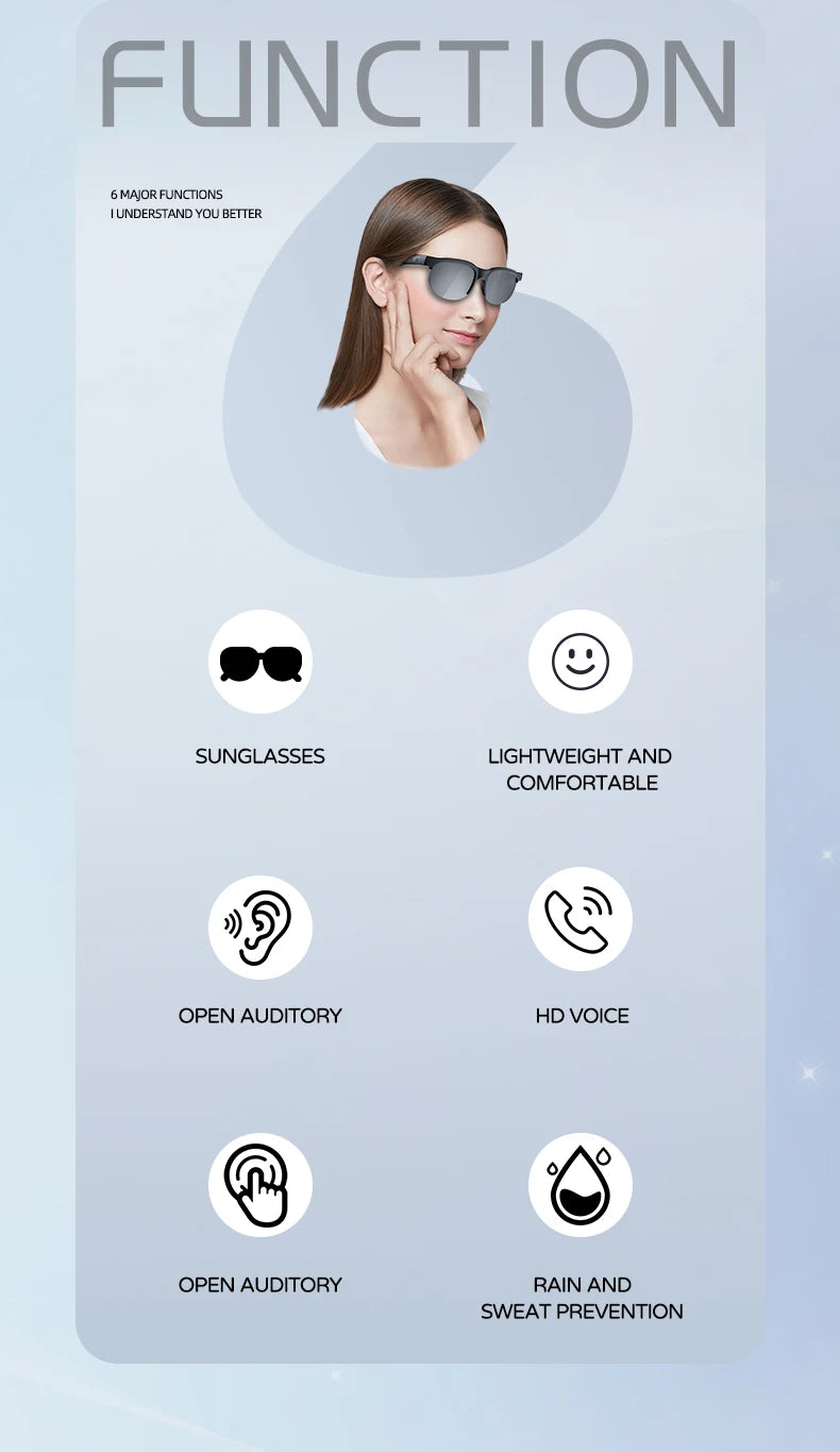 AI Übersetzungs-Sonnenbrille mit Bluetooth 5.3 – 144 Sprachen in Echtzeit – Musikbrille mit Lautsprecher & Mikrofon – Sportbrille für Reisen & Outdoor