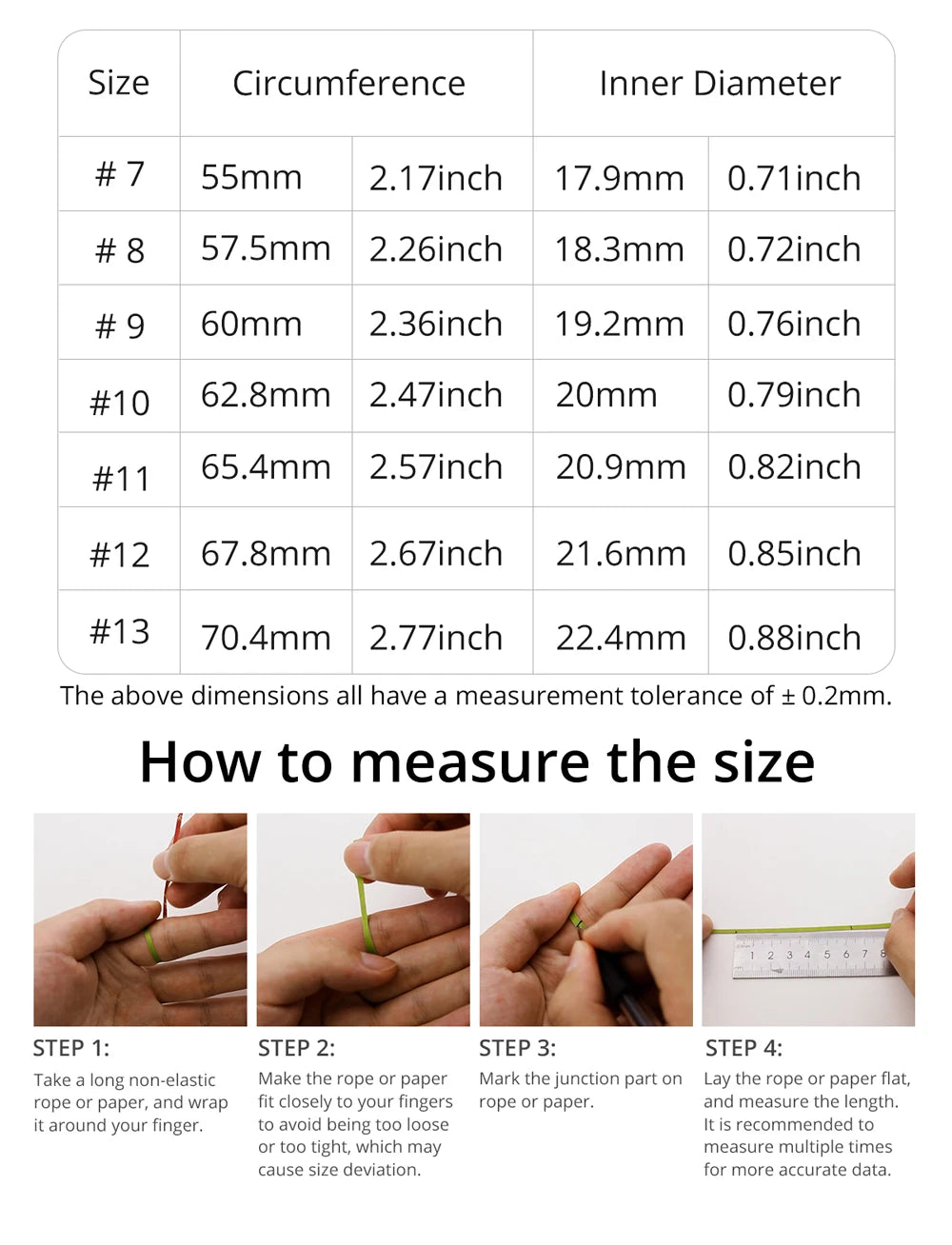 --- Vor dem Kauf Fingerumfang eng messen (dünner Papier- oder Schnurstreifen empfohlen)