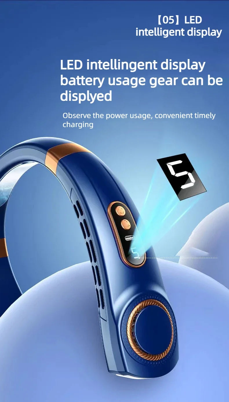 JKUOO Tragbarer Nackenventilator ohne Rotor mit LED & 4 Kühlplatten, 4000 mAh Akku, USB wiederaufladbar