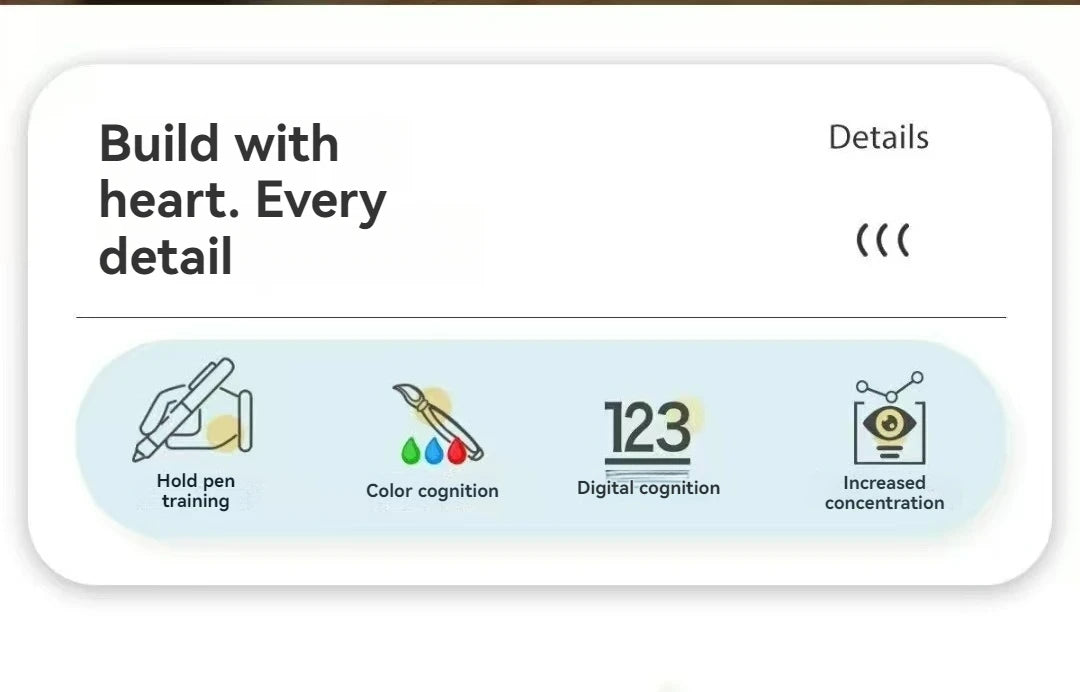 - Unterstützt logisches Denken, visuelle Wahrnehmung und Schreibvorbereitung