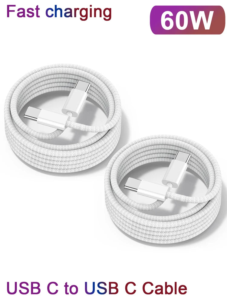 USB-C zu USB-C Nylon Kabel – 60W Schnellladekabel für iPhone 15, Samsung, Huawei & mehr